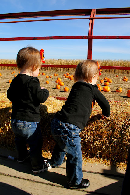 Today was our last fall fall outing...tear. We decided to go to Didier Farm and go on a hayride, but of course these girls couldn't pass by the PUMPKINS!!! They absolutely love crawling around in them. Magda even gave a hug to a few of them and even tried to pick them up...obviously she was not successful. As for Clara, she loved the hayride. There were scarecrows along the ride and she waved at every single one!